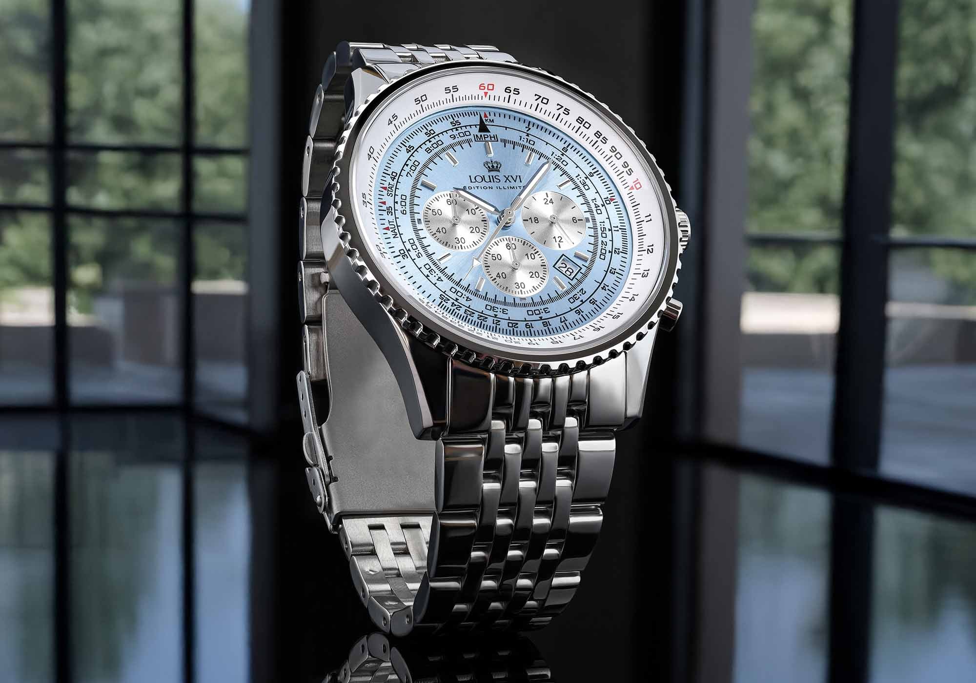 Inspiriert vom legendären Fliegeruhren-Design verbindet sie technische Details, klare Strukturen und sportliche Eleganz in einem Look, der einfach immer funktioniert.