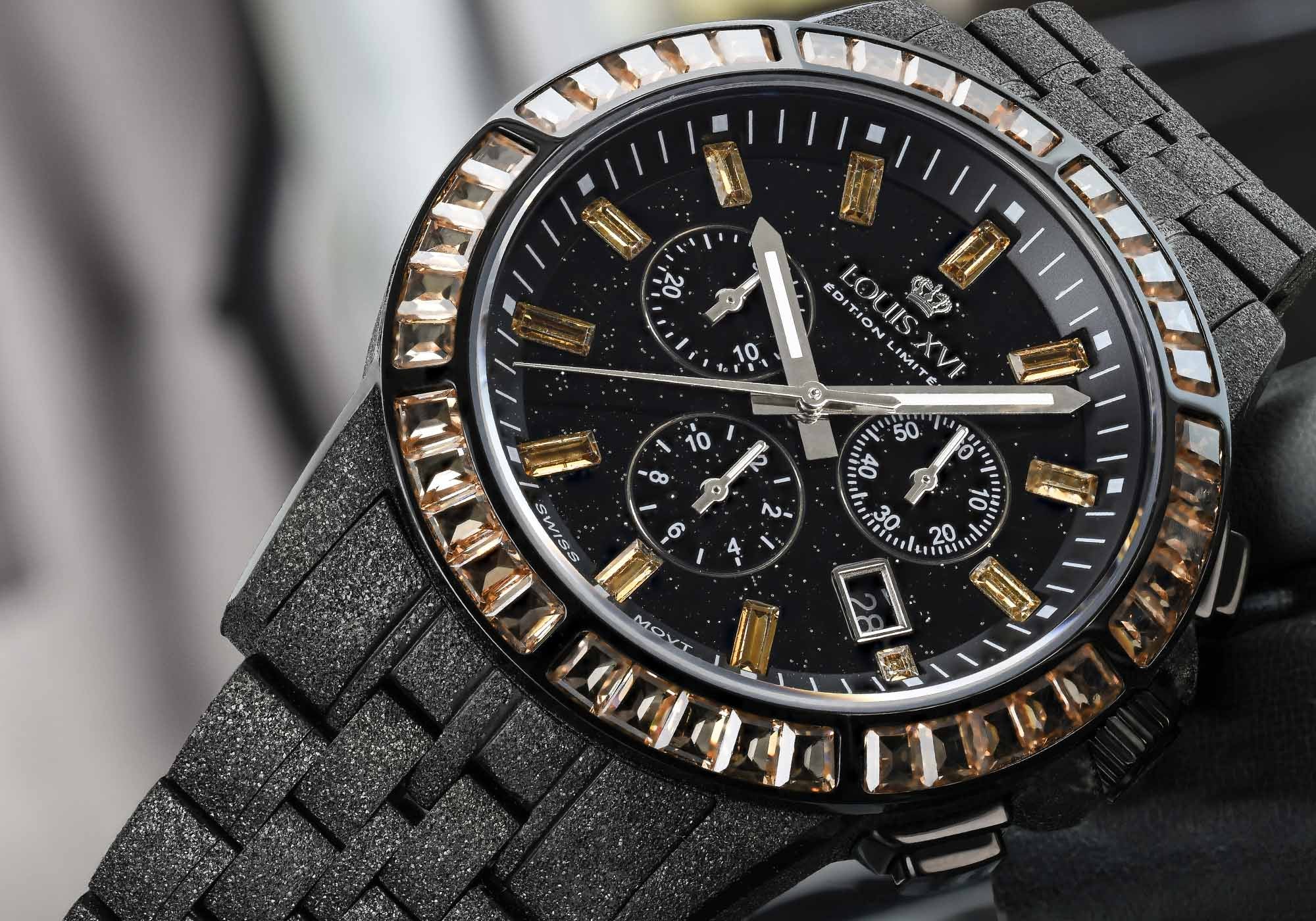 Strahlende Farben wie Desert Gold, Caviar Black, Midnight Blue, Emerald Green und Rainbow verleihen dieser Kollektion ihre außergewöhnliche Eleganz und Vielseitigkeit. Jede Nuance erzählt ihre eigene Geschichte – vom warmen Glanz der Wüstensonnenstrahlen bis zur tiefen Magie des Nachthimmels. Mit einem Hauch von Luxus und einem einzigartigen Schimmer unterstreichen diese Farben die Individualität und Schönheit der Uhren. Trage sie mit Stolz – sie sind so besonders wie Du!
