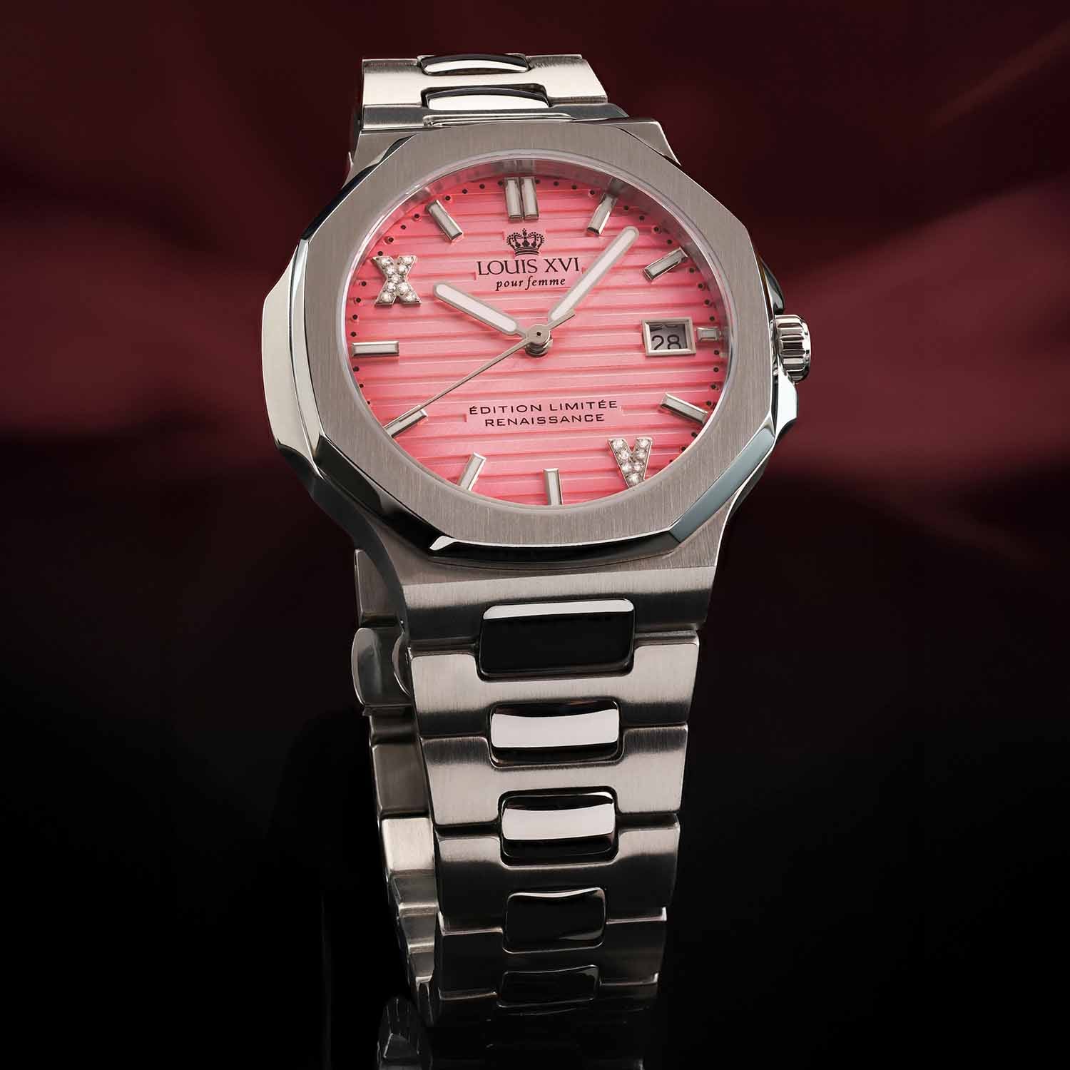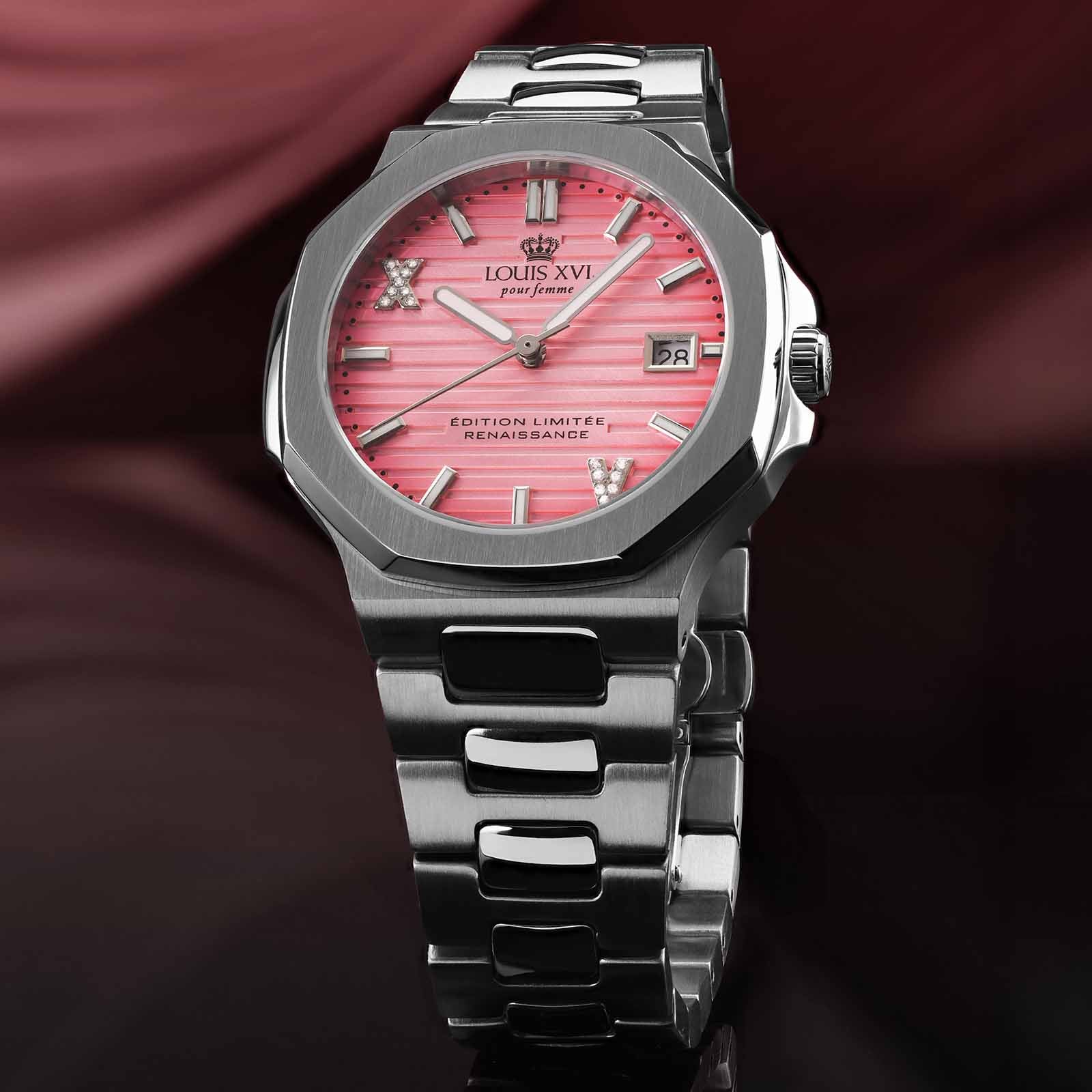 هناك لحظات يبدو فيها أن الوقت يتوقف – وهنا تبدأ Renaissance Femme. مجموعة مستوحاة من القوة والنعمة والأسلوب المميز للنساء المعاصرات. التصميم يجمع بين الخطوط الناعمة والشكل الواضح، الألوان الأنثوية مع اللمسات الفاخرة. تفاصيل مرصعة بالألماس، وموانئ متلألئة بلطف، واللعب الدقيق للضوء والهيكل تجعل كل ساعة رمزًا لـالثقة بالنفس والرقي.