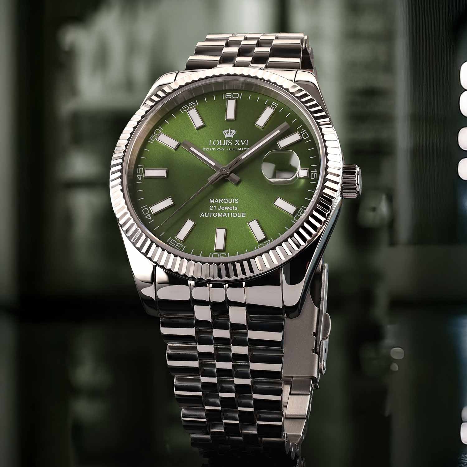 Unlimitiert und preislich so gestaltet, dass sie in diesen Zeiten einen beständigen Wert schafft. Angetrieben wird die "Marquis" durch ein japanisches Seiko Automatik-Uhrwerk NH35, bekannt für seine Beständigkeit und höchste Präzision. Dieses Uhrwerk steht für Zuverlässigkeit und Langlebigkeit – auch nach vielen Jahren verrichtet es seinen Dienst mit Perfektion und kann immer wieder revidiert werden, um Generationen zu überdauern.