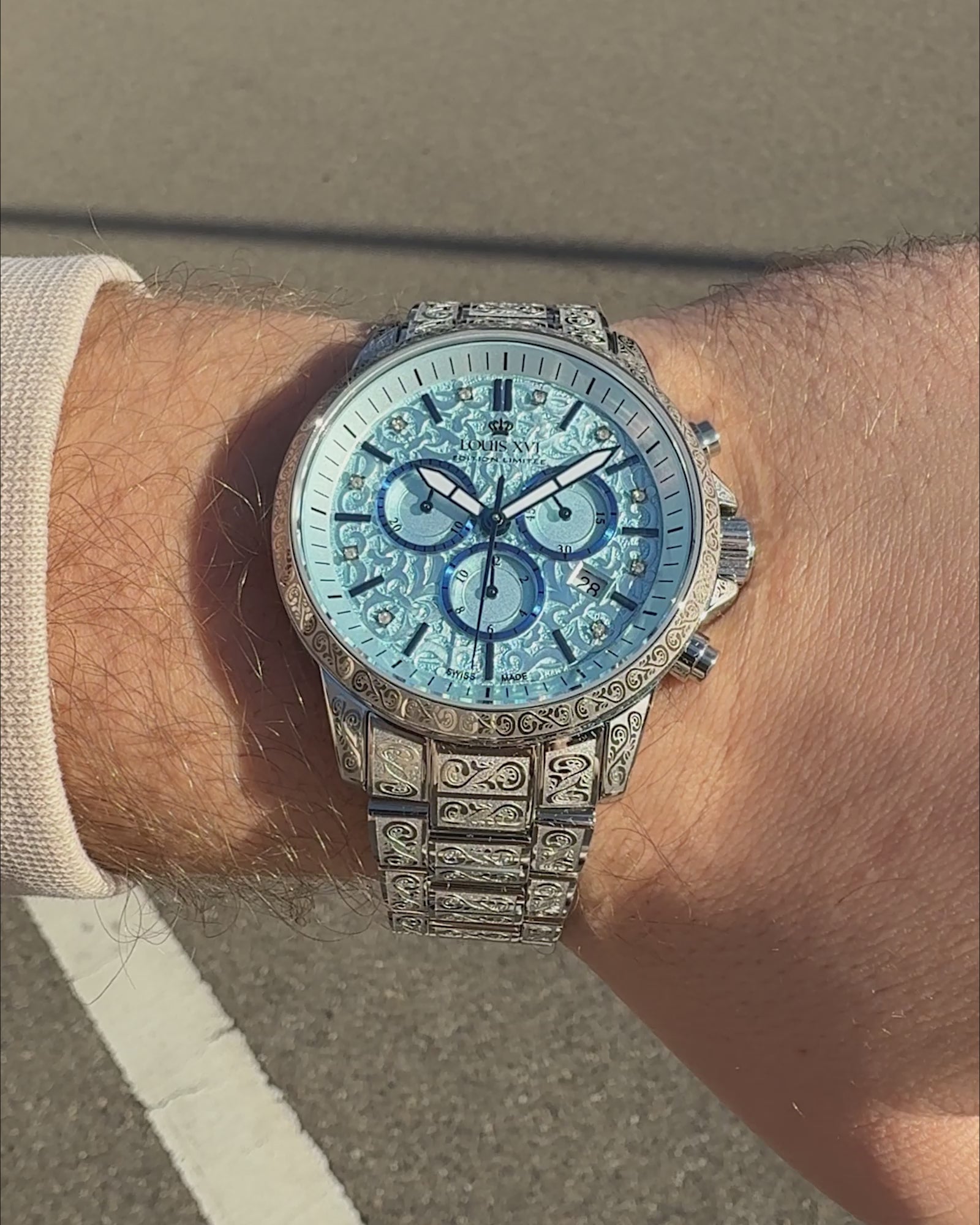 Lange ist es her, fast 5 Jahre, dass die erste Version der Palais Royal entwickelt wurde. Seither gab es viele Versionen mit Indizes, römischen Ziffern, grünen Leuchtzeigern, blauen Leuchtzeigern bis hin zu iced-out Zifferblättern und inked Versionen. LOUIS XVI hat sich mit den Uhren der Palais Royal Kollektion einen Namen gemacht.