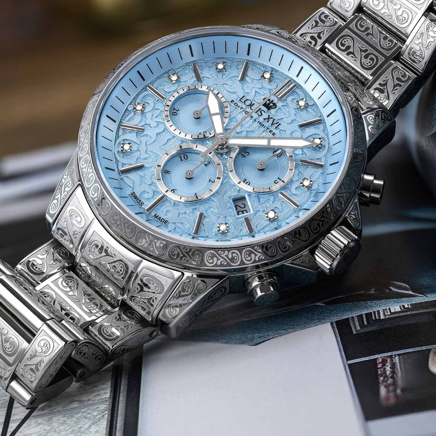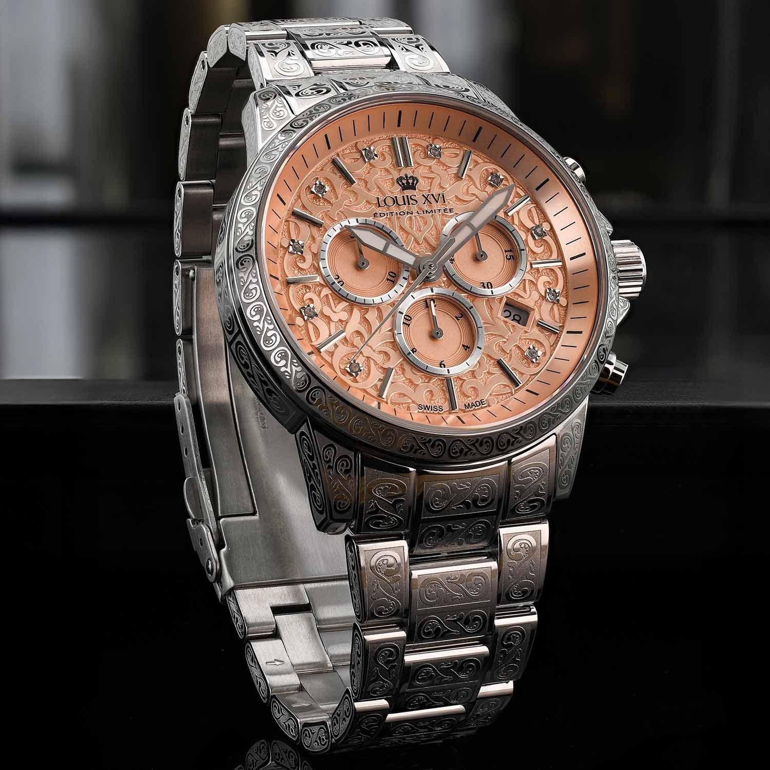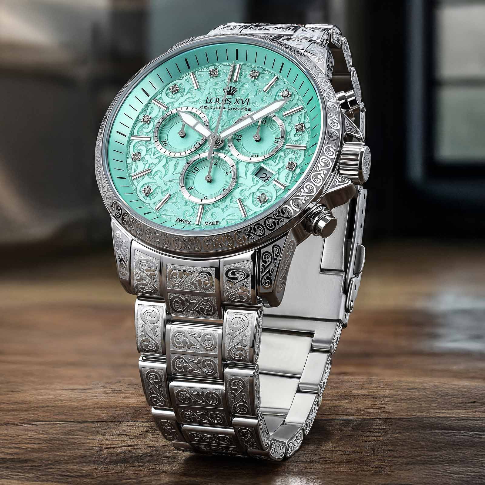 Det er længe, næsten 5 år, siden den første version af Palais Royal blev udviklet. Siden da har der været mange versioner med indekser, romertal, grønne lysende visere, blå lysende visere samt iced-out urskiver og sværtede versioner. LOUIS XVI har skabt sig et navn med urene fra Palais Royal-kollektionen.