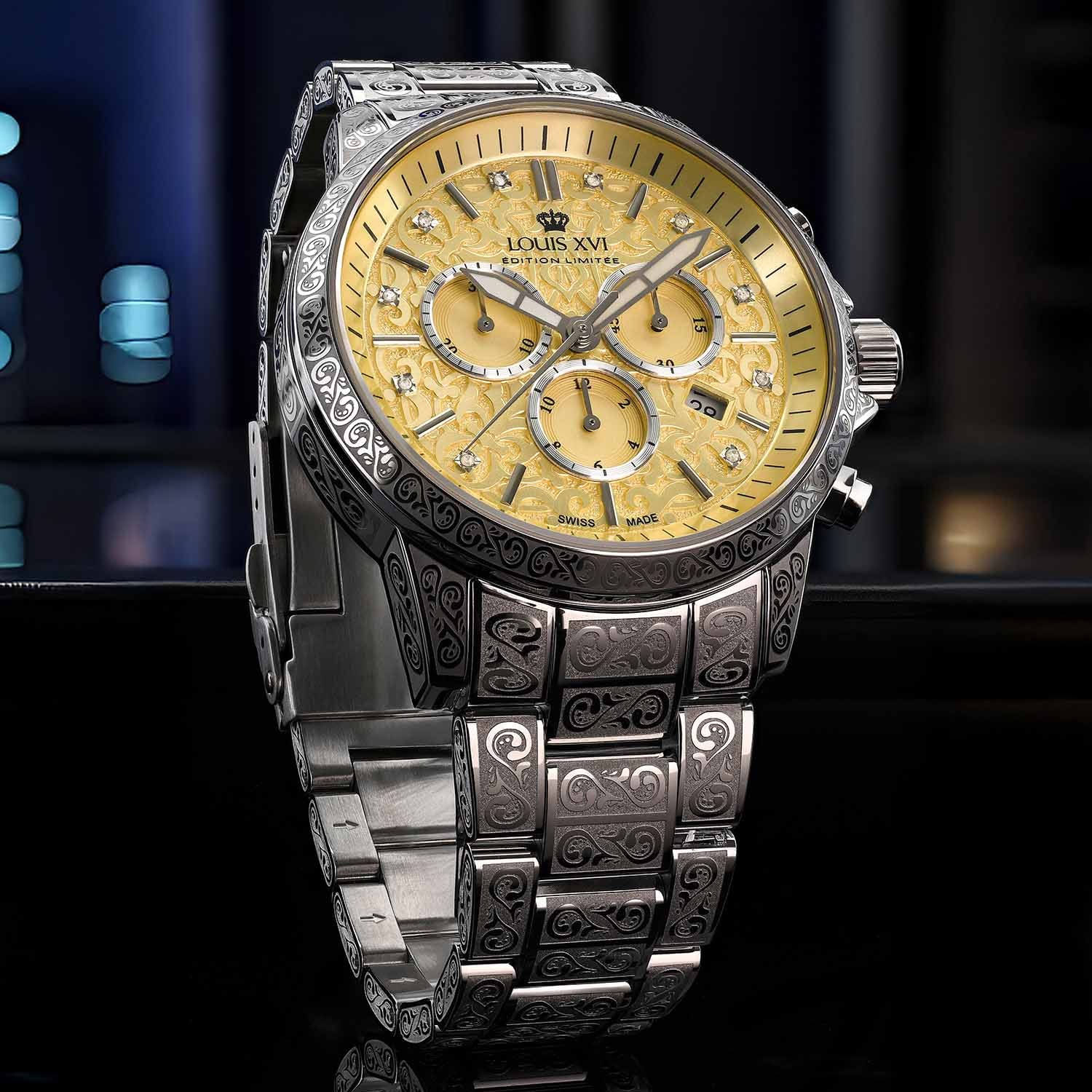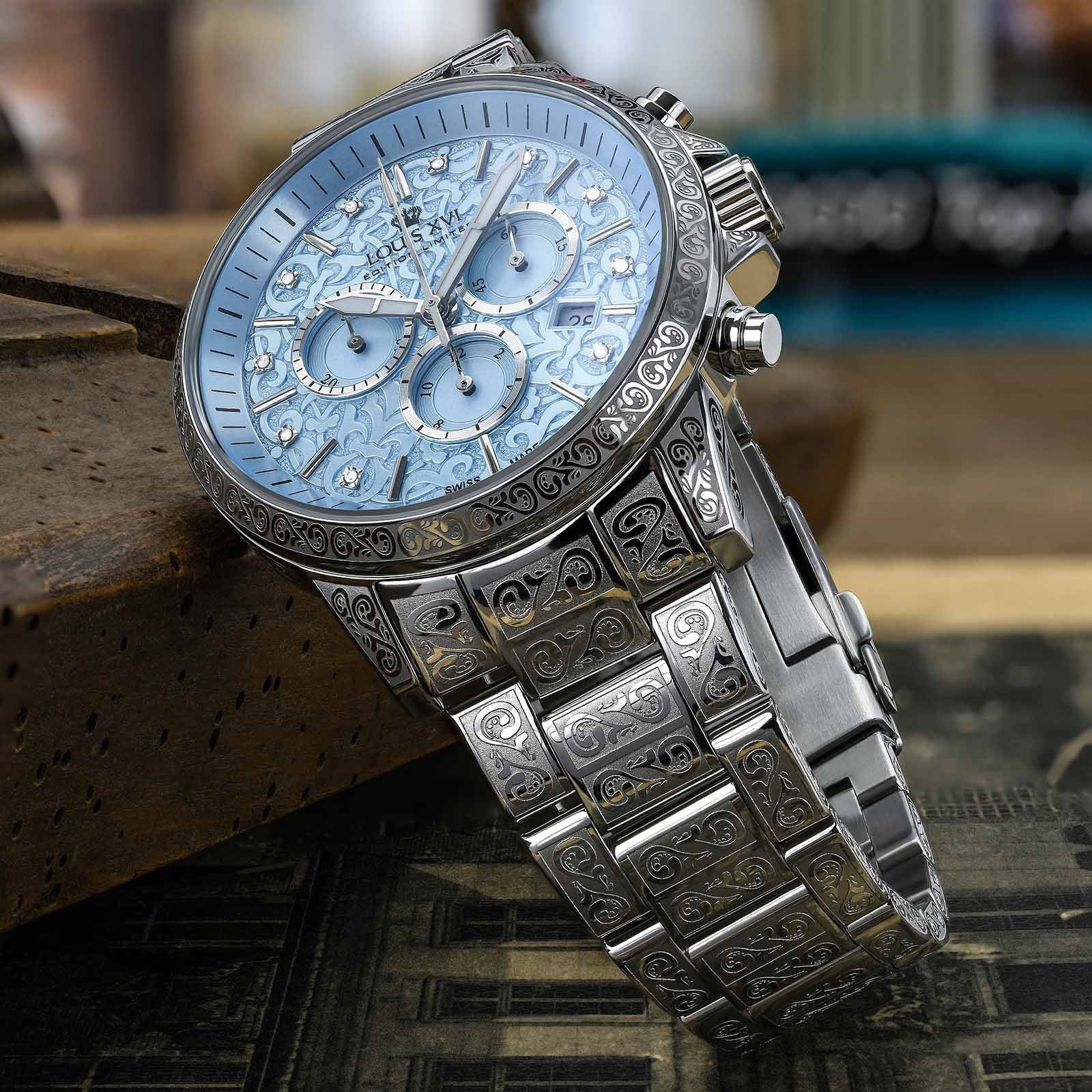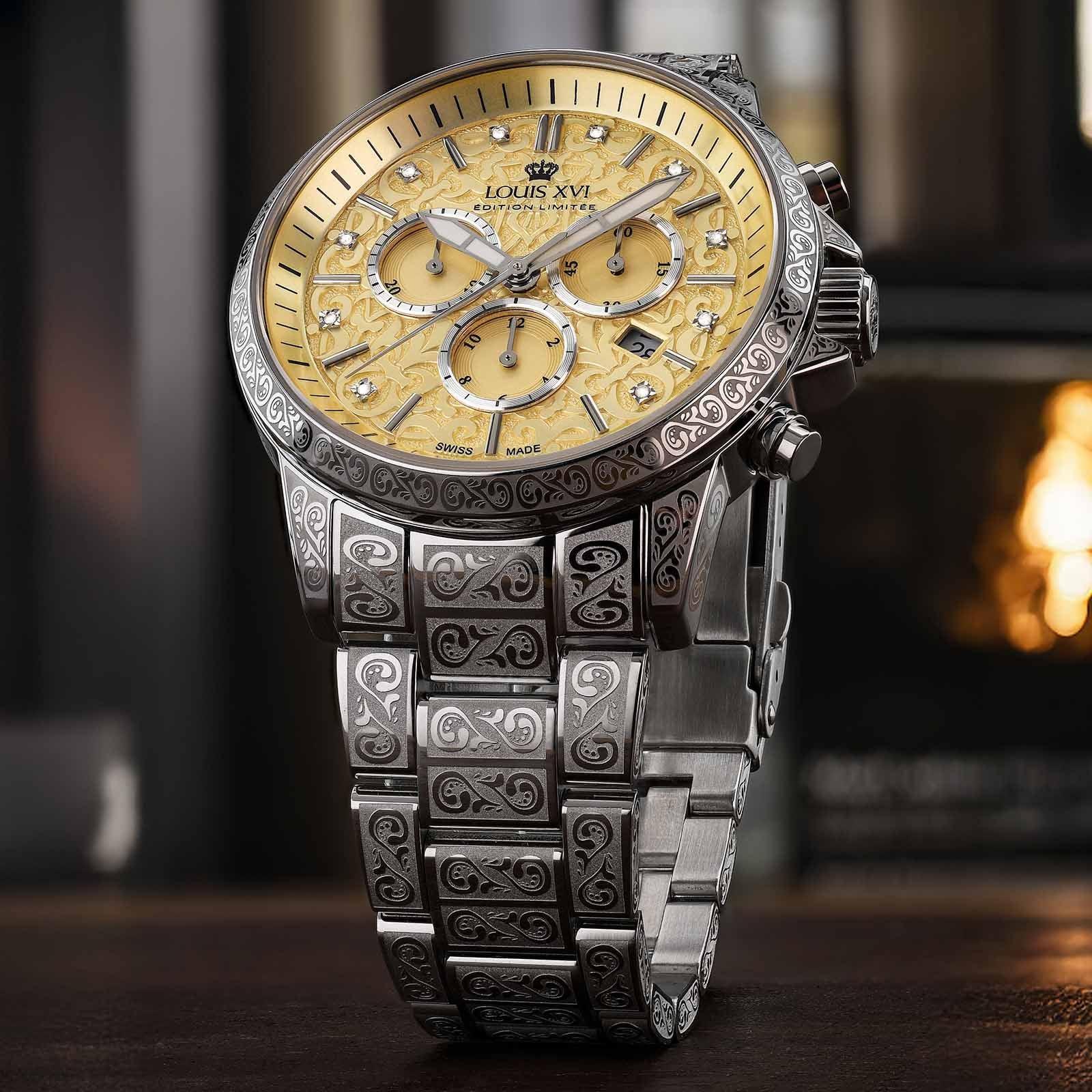 Det er længe, næsten 5 år, siden den første version af Palais Royal blev udviklet. Siden da har der været mange versioner med indekser, romertal, grønne lysende visere, blå lysende visere samt iced-out urskiver og sværtede versioner. LOUIS XVI har skabt sig et navn med urene fra Palais Royal-kollektionen.