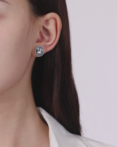 Die silberfarbene Variante überzeugt durch klare Linien und eine ruhige Ausstrahlung. Schwarze Emaille verleiht dem Ohrstecker Tiefe und Charakter.