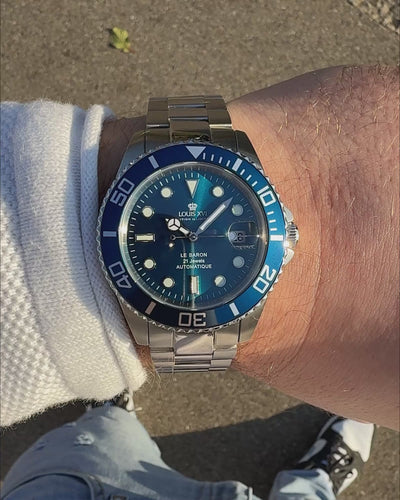 Die Le Baron Ref. 3123 vereint zeitloses Design mit sportlicher Eleganz. Das tiefblaue Zifferblatt und die harmonisch abgestimmte Lünette verleihen der Uhr einen klaren, modernen Look, der sowohl im Alltag als auch zu besonderen Anlässen überzeugt.