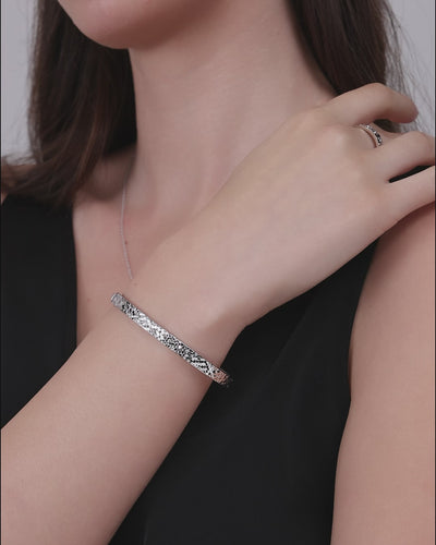 Inspiriert vom natürlichen Schimmer, der eine Frau bei jeder Bewegung begleitet, übersetzt dieses Armband das Licht durch eine Diamond-Cut-ähnliche Feingravur in eine leise, raffinierte Ausstrahlung.