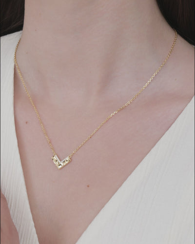 Die elegante V-Form dieser Kette folgt der natürlichen Linie des Halses und lenkt den Blick harmonisch zur Mitte.