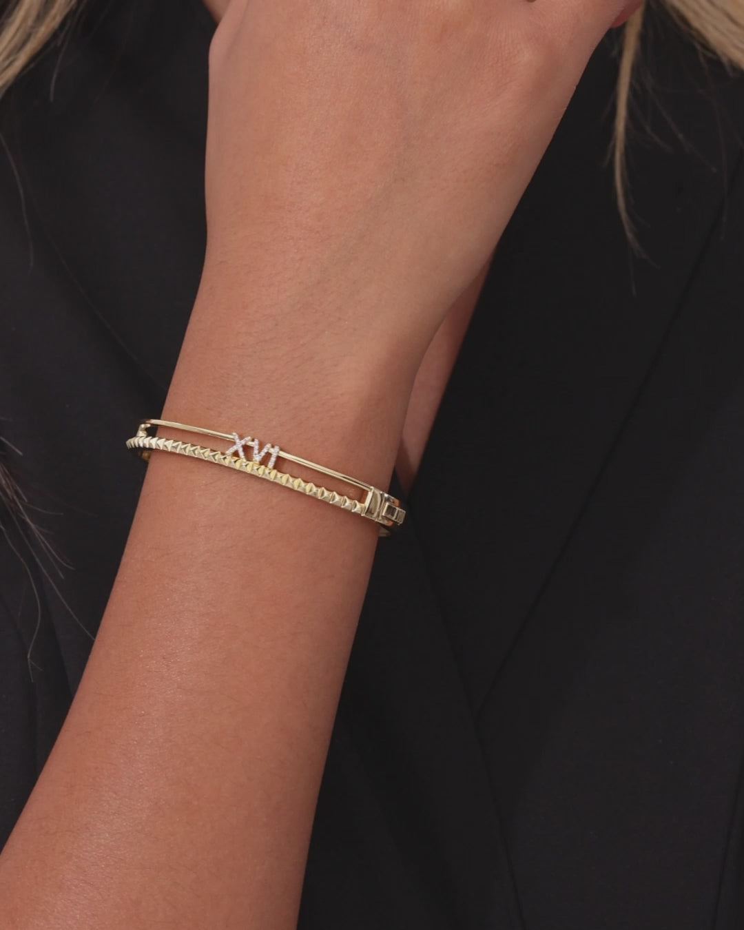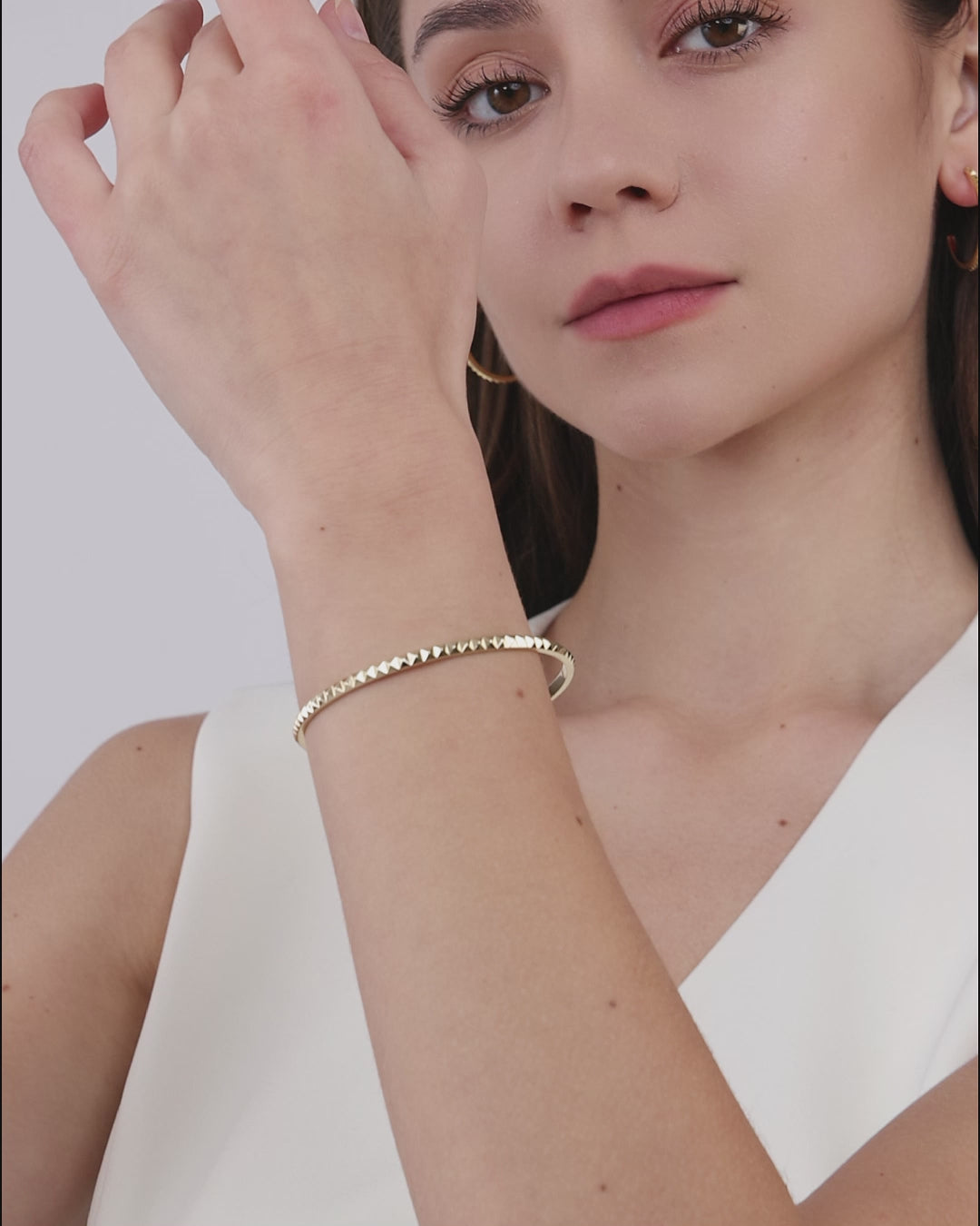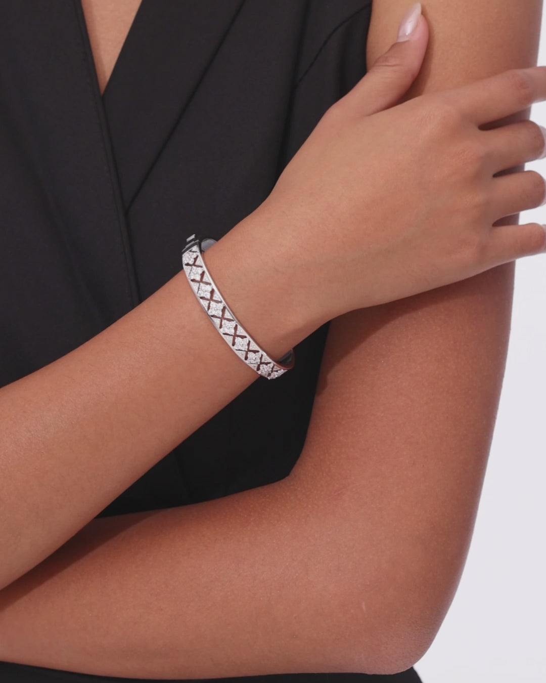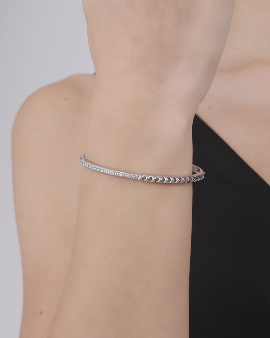 Den slanke, åbne fatning lader maksimalt lys nå stenene, den flade ledkonstruktion sidder glat på håndleddet og er behagelig at bære.