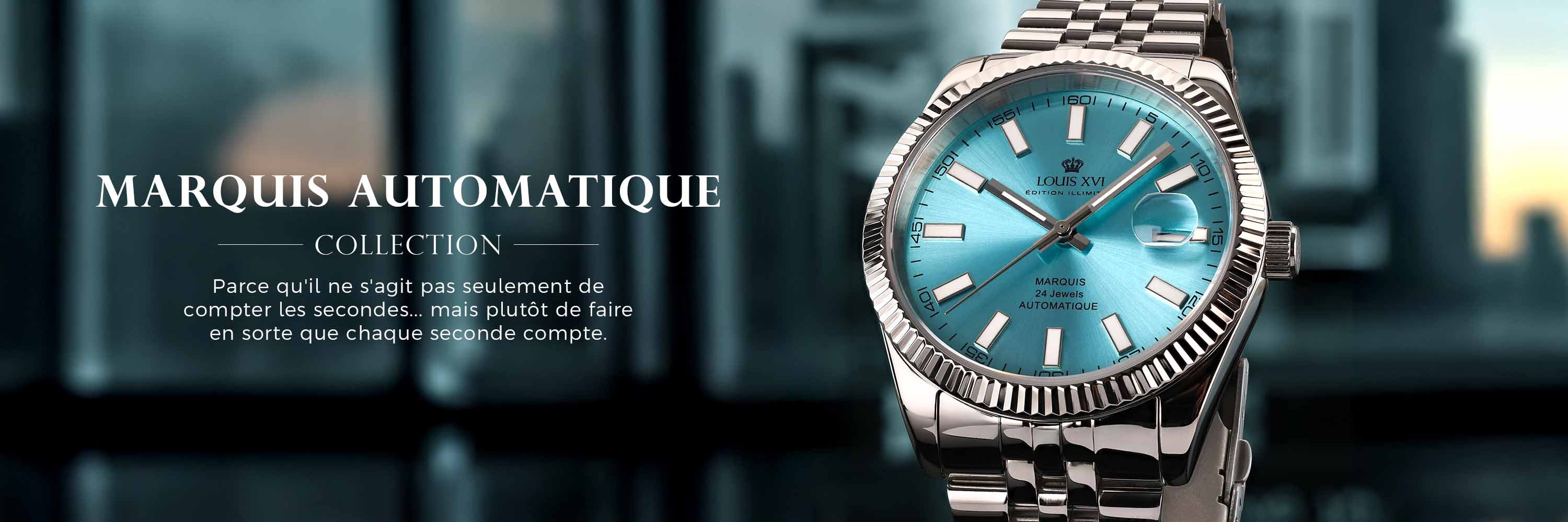 Chaque montre de la collection Marquis a été conçue pour les personnes qui apprécient la classe et la qualité. Que ce soit dans une finition dorée brillante ou dans un noir éclatant avec des index argentés, la collection Marquis allie tradition et modernité d'une manière inimitable.