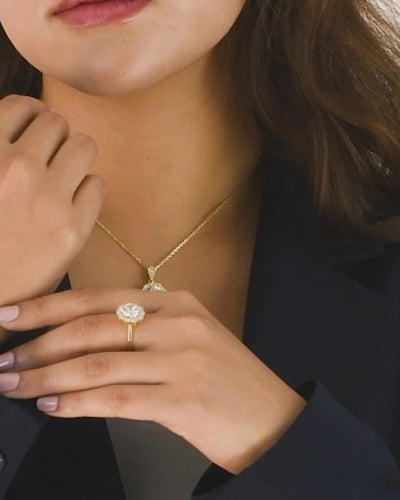 En ring av S925 sterlingsilver med 14K-guldfinish drar alla blickar till sig.